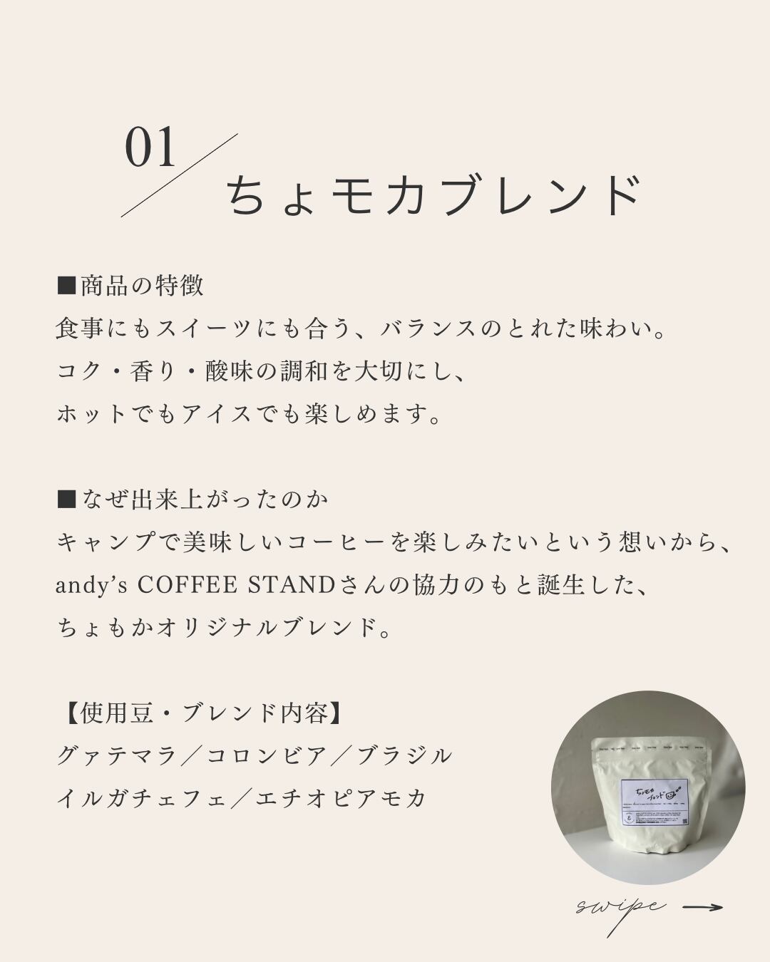 • 生豆生産国:グァテマラ / コロンビア / ブラジル / イルガチェフェ / エチオピアモカ